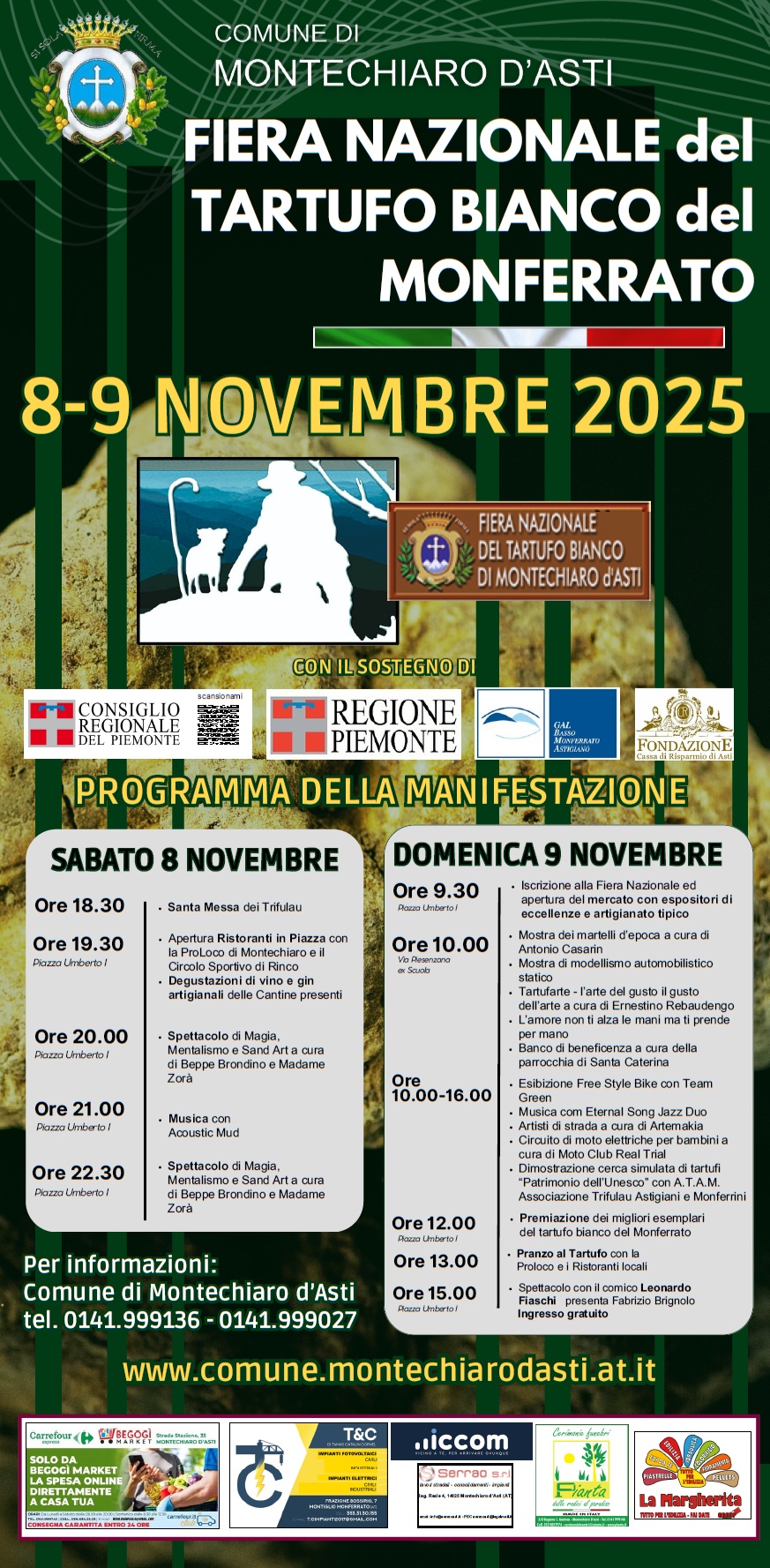 37 ^Fiera Nazionale del Tartufo Bianco di Montechiaro d’Asti DOMENICA 9 NOVEMBRE 2025